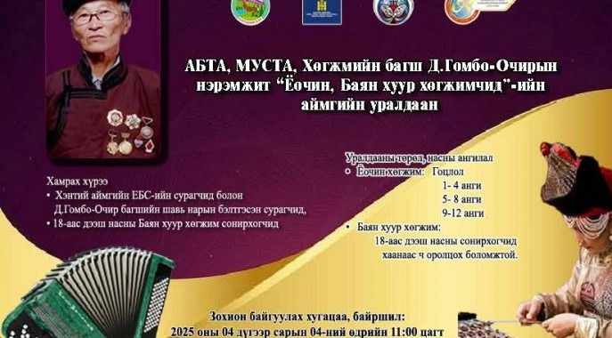 АБТА, МУСТА, ахмад багш Доржийн Гомбо-Очирын нэрэмжит "Ёочин, Баян хуур хөгжимчид”-ийн аймгийн уралдаан