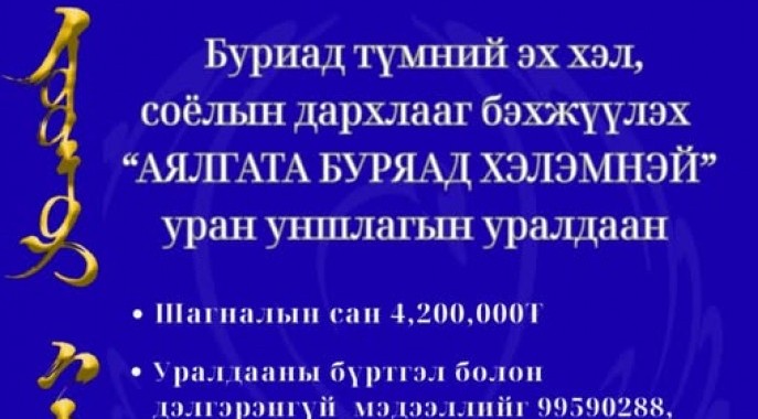 Буриад түмний эх хэл, соёлын дархлааг бэхжүүлэх “АЯЛГАТА БУРЯАД ХЭЛЭМНЭЙ” уран уншлагын уралдааны удирдамжийг доорх QR код уншуулж танилцана уу.