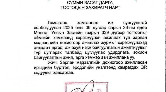 "ТӨРИЙН АЛБАНЫ ӨДӨР” ӨНӨӨДӨР ТОХИОЖ БАЙНА"