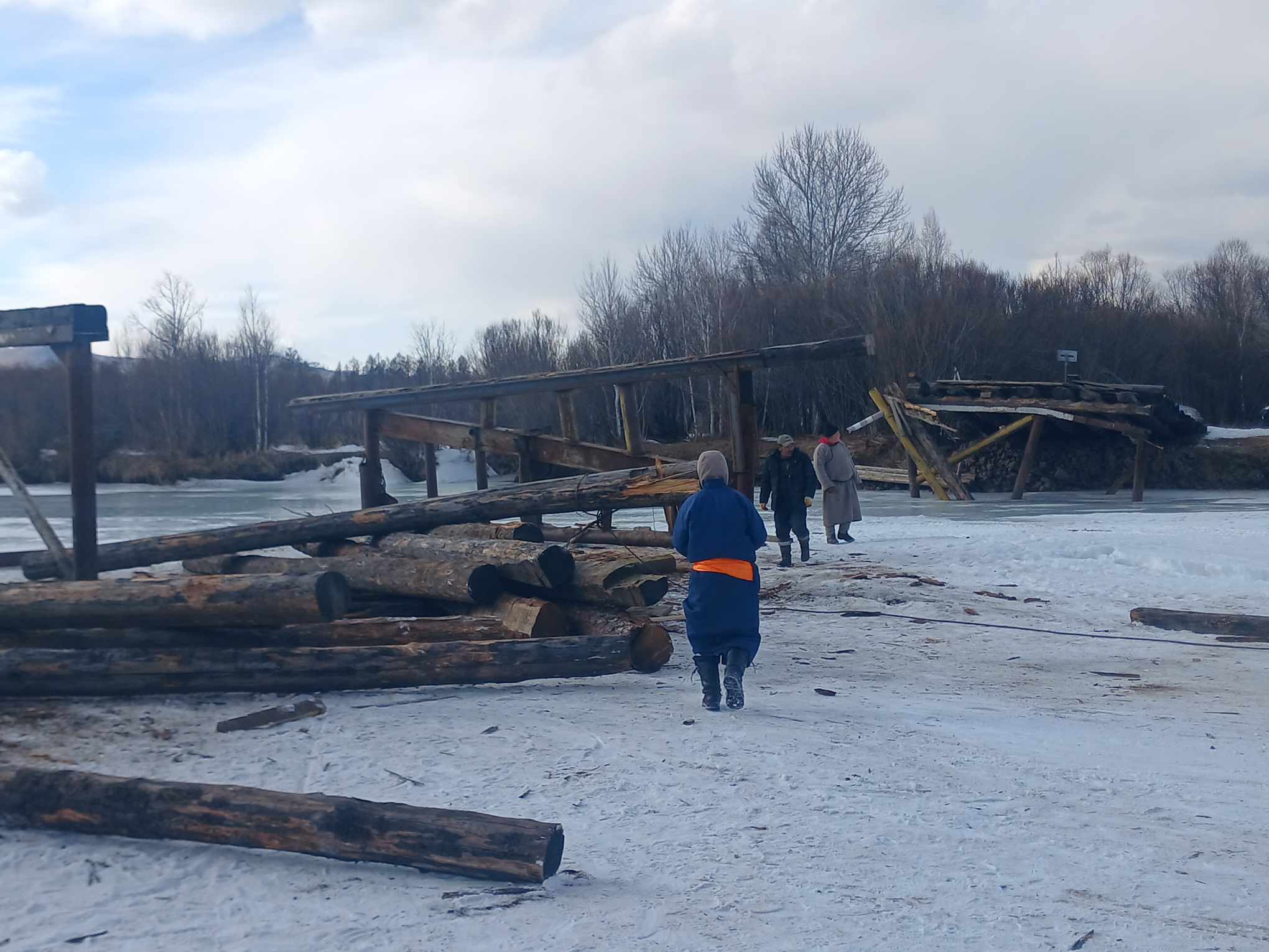 Онон голын модон гүүрийг буулгах ажлыг эхлүүлж, тус багийн нийт 55 иргэн ажиллаж байна.