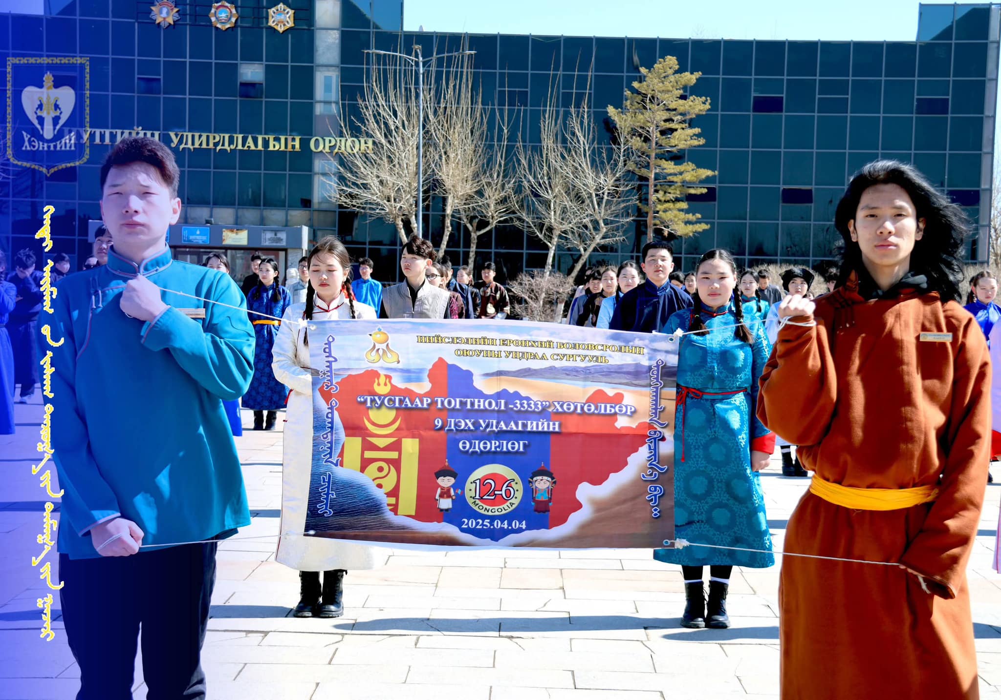 /2025.04.04/ Монгол Улсын Хөдөлмөрийн баатар, Ардын уран зохиолч Дэндэвийн Пүрэвдоржийн “Тусгаар тогтнол” шүлгийг аймгийн төв талбайд 240 гаруй сурагчид нэгэн зэрэг уншин ЦЭНГҮҮЛЛЭЭ.