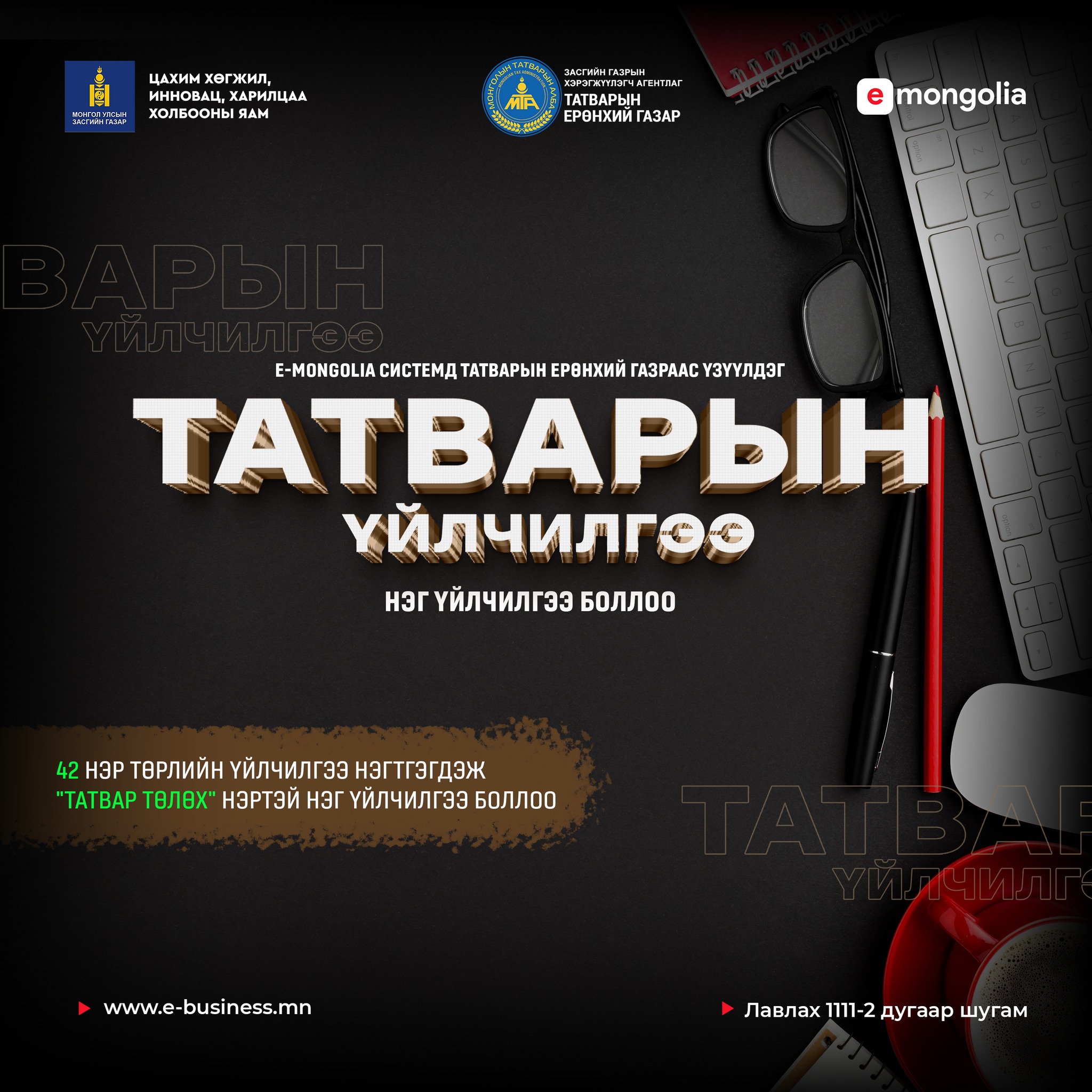 E-Mongolia системээр дамжуулан Татварын ерөнхий газрын 42 төрлийн үйлчилгээг тус бүрээр нь хайж авдаг байсан бол, одооноос эхлэн эдгээр үйлчилгээг нэг дороос, илүү ойлгомжтой, хялбар бөгөөд шуурхай авах боломжтой боллоо.
