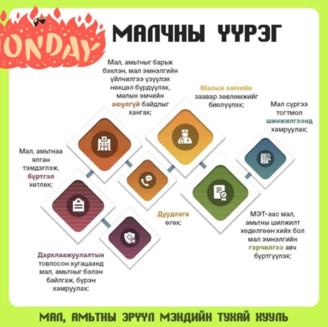 Малчин, мал бүхий иргэдэд тогтсон хугацаанд өөрийн үхэр сүргийг хашиж, барьж бэхлэн малын эмчийн аюулгүй байдлыг ханган, дархлаажуулалтад бүрэн хамруулна уу.