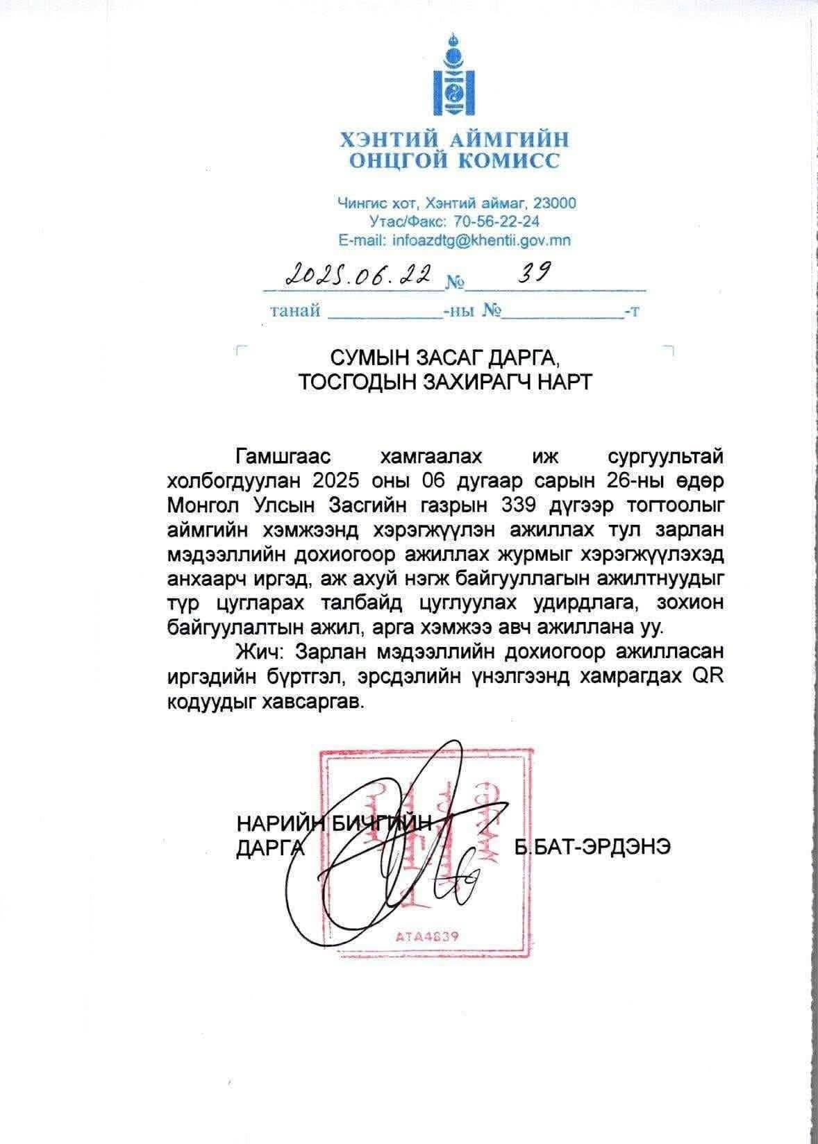 Гамшгаас хамгаалах иж бүрэн сургуулилттай холбоотойгоор 2025.06.26-ны өдөр СЕРЕНА дохио дуу гарахад түр цуглах газар болох Хүүхдийн тоглоомын талбайн баруун талын талбайд цугларч гамшгаас хамгаалах дадлага сургуулилтад идэвхтэй оролцохыг иргэд та бүхнийг уриалж байна.