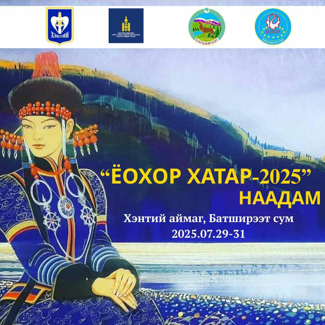 Монгол Улсын Засгийн газрын “Go Mongolia” хөтөлбөр, Хэнтий аймгийн аялал жуулчлалыг дэмжих бодлогын хүрээнд 2025 оны 7-р сарын 30–31-нд Хэнтий аймгийн Батширээт суманд зохион байгуулагдах “ЁОХОР ХАТАР-2025” наадмын хөтөлбөр танилцуулж байна.