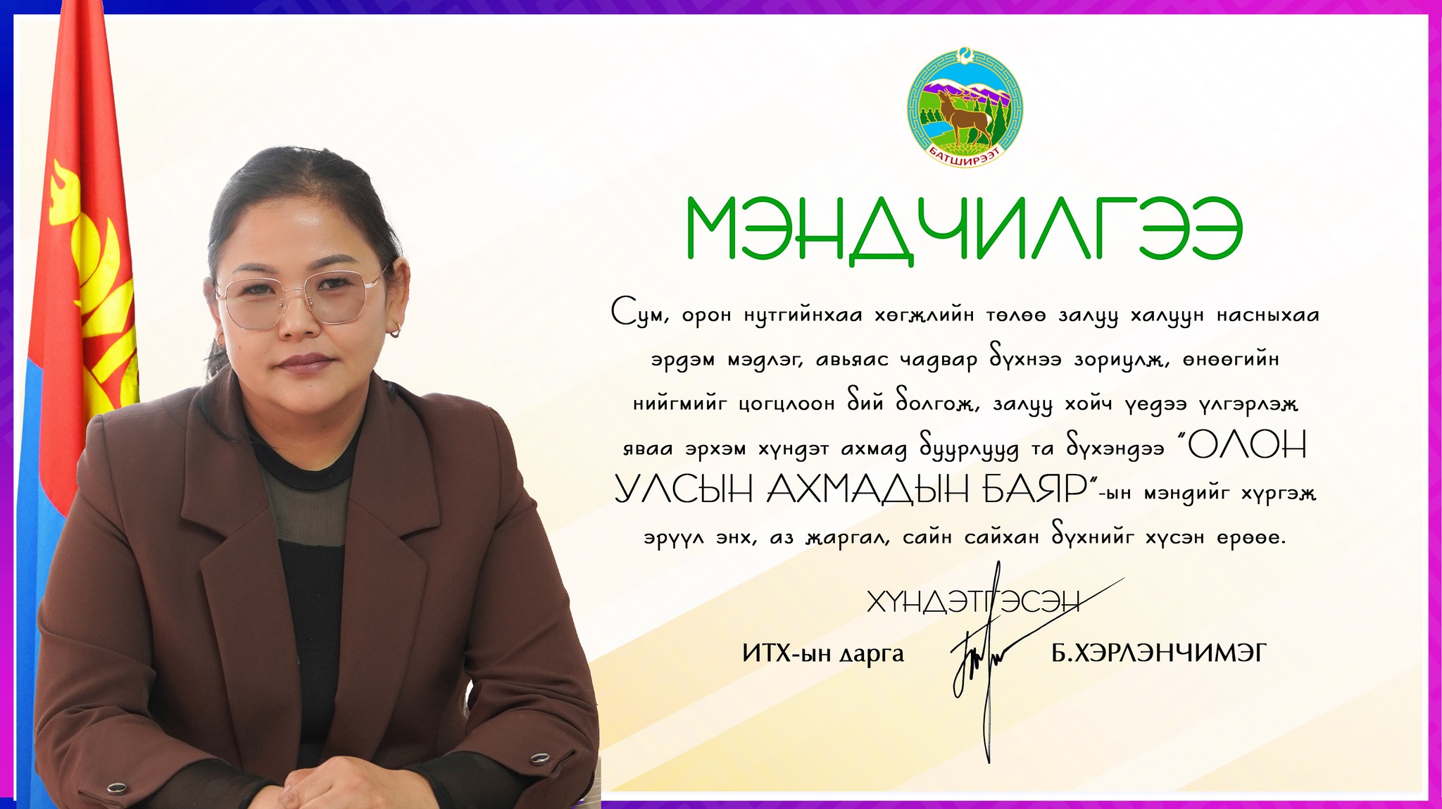 ОЛОН УЛСЫН АХМАДЫН БАЯРЫН МЭНД ХҮРГЭЕ.