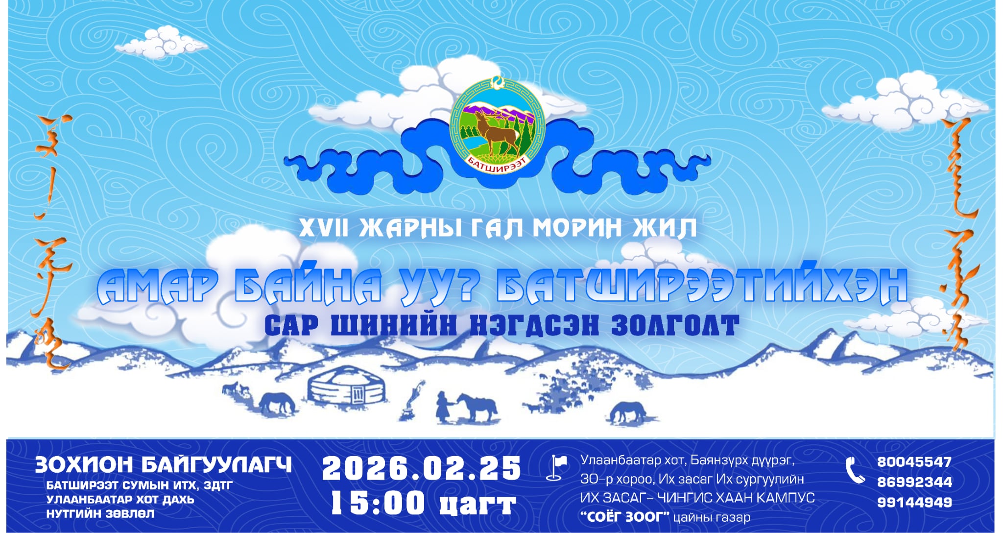 XVII жарны "Сүрээр дарагч" хэмээх Гал морин жилийн "АМАР БАЙНА УУ? БАТШИРЭЭТИЙНХЭН" сар шинийн нэгдсэн золголт