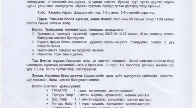 “ТYҮХЭН НУТГИЙН БАХАРХАЛТ СОЁЛЫН ӨВ 2025” АЯНЫ ХҮРЭЭНД ЗОХИОН БАЙГУУЛАГДАХ “БУРИАД АЯНГАЙ МҮРИЙСӨӨН 2025” БУРИАД ДУУНЫ ХОЙД БҮСИЙН УРАЛДААН
