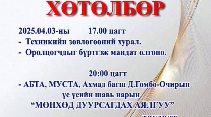 АБТА, МУСТА, Ахмад багш Доржийн Гомбо-Очирын нэрэмжит "Ёочин, Баян хуур хөгжимчид"-ийн аймгийн уралдааны хүрээнд зохион байгуулагдах үйл ажиллагааны хөтөлбөр