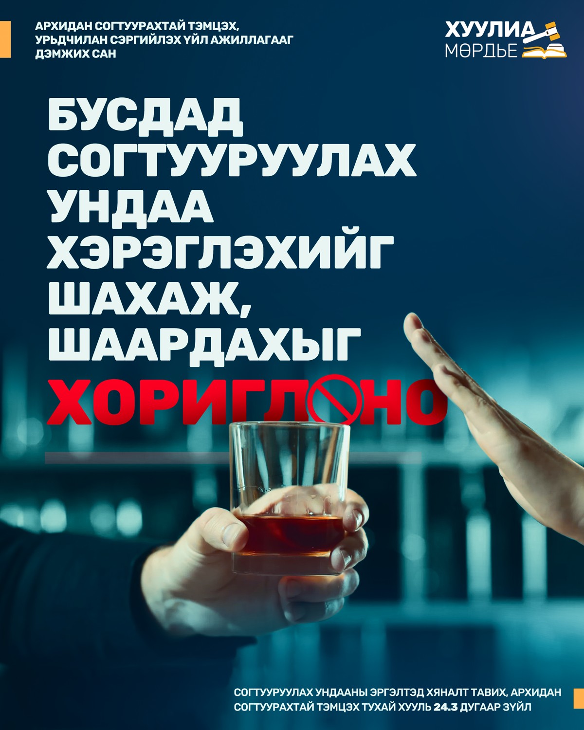 Бусдад согтууруулах ундаа хэрэглэхийг шахаж, шаардахыг хориглоно.