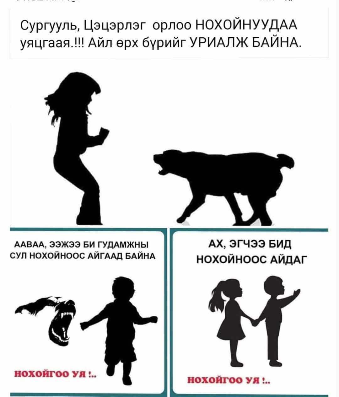 Иргэд та бүхэн өглөөний 06:00 цагаас оройн 22:00 цаг хүртэл нохойгоо уяж байхыг анхааруулж байна. Эрүүл, аюулгүй амьдралын төлөө хамтдаа.