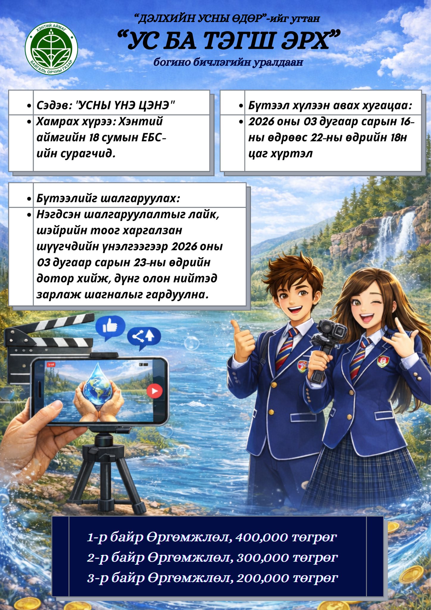 Нэгдсэн шалгаруулалтыг лайк, шэйрийн тоог харгалзан шүүгчдийн үнэлгээгээр 2026 оны 03 дугаар сарын 23-ны өдрийн дотор хийж, дүнг олон нийтэд зарлаж шагналыг гардуулна.